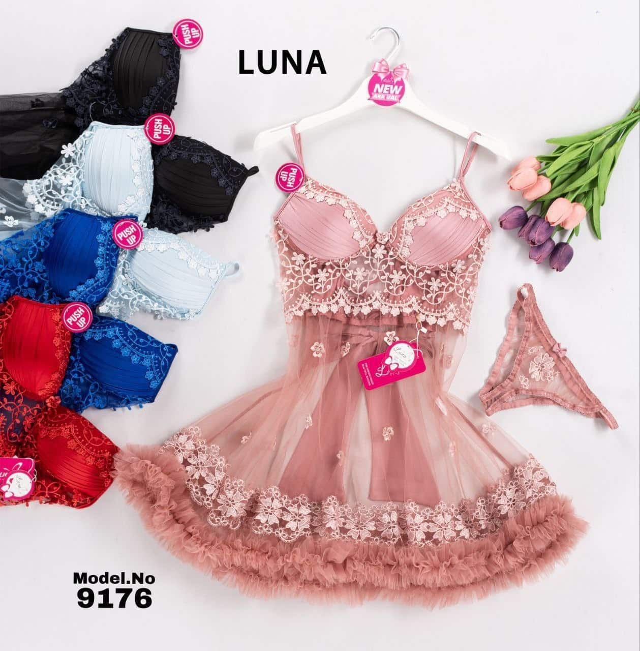 تألقي بإطلالة حالمة مع موديل 9176 من لونا. بيبي دول قصير من التول الشفاف المزين بتطريزات ورد رقيقة على الصدر والحواف، مع تصميم صدر كب (Push-up) لإبراز الجمال بشكل مثالي، وكرانيش كثيفة عند الأطراف تضفي لمسة من الحيوية