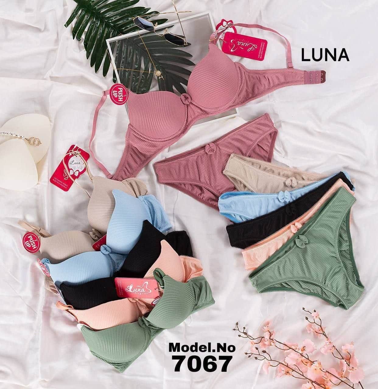طقم داخلي ريب، ملابس داخلية قطن مضلع، لانجري Luna يومي، برا وبانتيه مريح