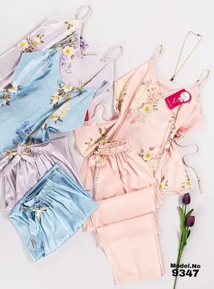 موديل بيجامه قطعتين شورت ستان كود 7004