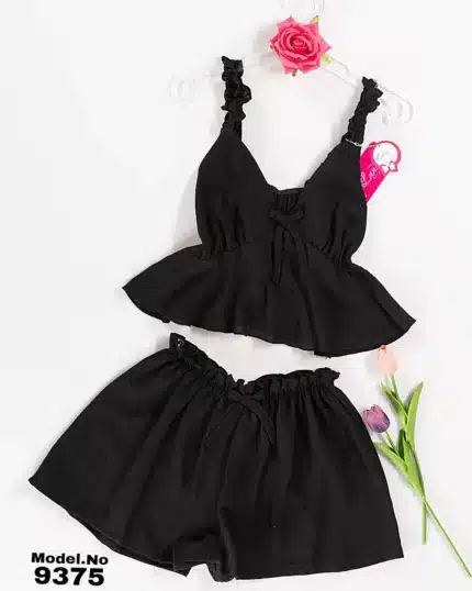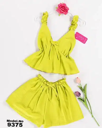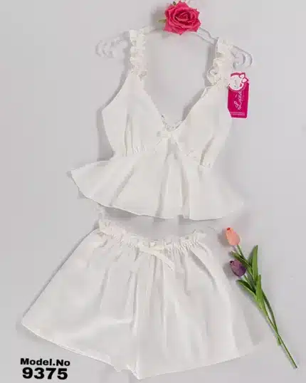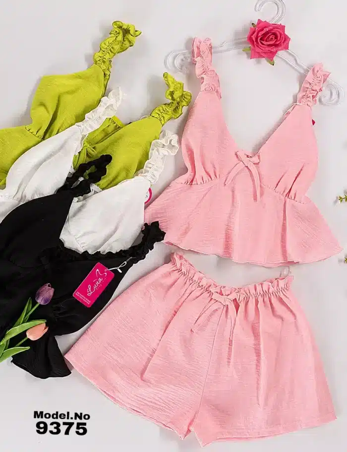 موديل بيجامه قطعتين شورت ستان كود 7004